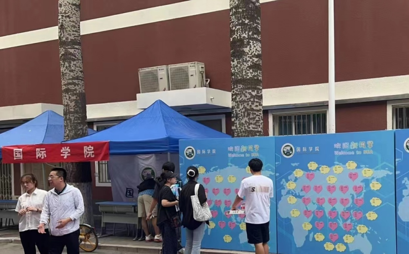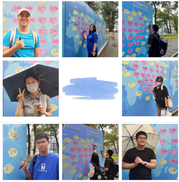 新生报到的地点设置在教学楼b的102教室和操场旁边的EMC易倍服务台,每个班的两名班助负责确认新生报道情况和信息的录入,同时发放公司为每个小萌新准备的礼包,里面包括员工手册、入学指南、员工常见事务问答、公司新生教育和军训安排表等等。整体迎新工作行云流水,有条不紊,新生们还纷纷打卡精心布置的迎新签名墙、留下自己的名字,记录步入大学时刻。