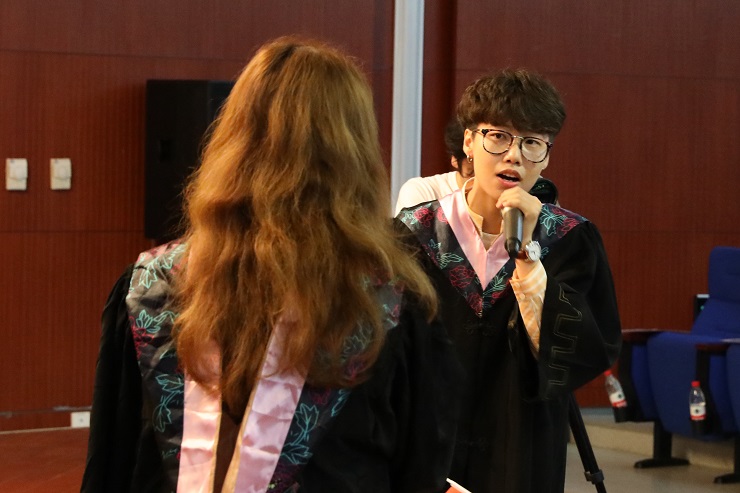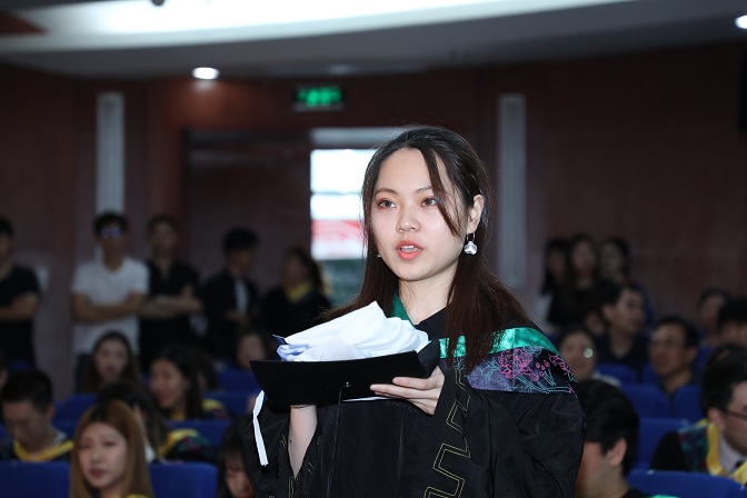 在宣誓环节,肖弘毅同学带领大家庄严宣誓:“出国留学期间,遵守所在国法律和所在公司规章制度,尊重当地风俗习惯,牢记“厚德笃行、博学尚农”校训,积极践行社会主义核心价值观,勤学修德、明辨笃实、报效祖国,树立新时代中国青年良好形象。”当誓词从每个人的口中发出,它们就不再是简单的文字排布,更是一种承诺,也是每位同学心中衡量事物的一杆标尺。