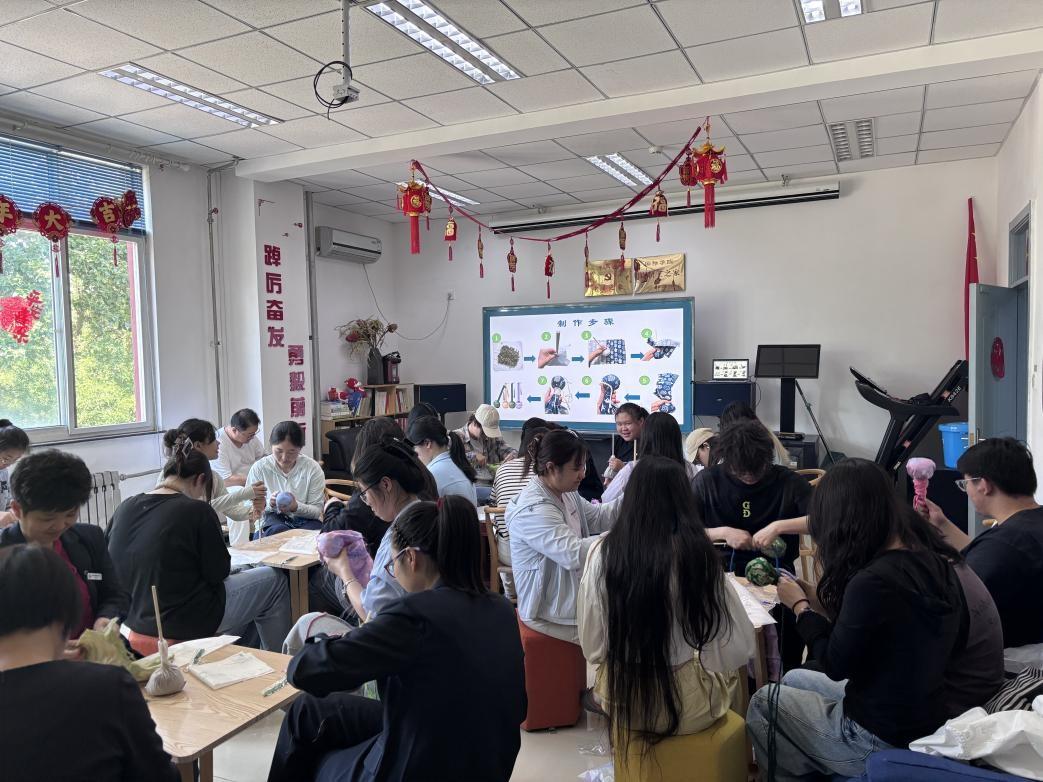 24级农业资源与环境班班长柳旭首先为师生们介绍了艾草的好处和制作艾草锤的步骤。师生迫不及待,满怀着对传统文化的热忱,边听边动手,将散发着淡雅清香的艾草精心包裹进柔软的包布之中,精心固定锤头,耐心缠制锤把。师生欢聚一堂,交流制作技巧,一把把实用又美观的艾草锤在一双双巧手中逐渐成形。教室里弥漫着艾草的清香,欢声笑语交织在一起。