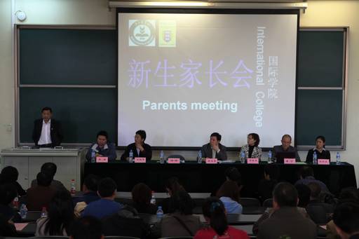 The parents meeting of International College fresh students was held at 11:00 - 12:30 AM, International College staffs attended the conference are: Director :Zhang Zhiyong. Secretary of the Party: Tan Feng, English Teachers: Song Jinpin, Li Ning. Administrators: Zhu Tao, Guo Chuanzhen. Liu Tiejun, the deputy director, was the host of this conference.