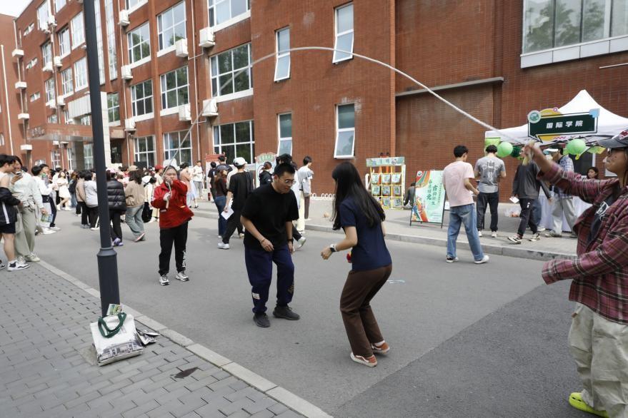 活动现场化身古今文化交融的立体画卷。九宫蹴鞠场上,彩鞠凌空划出优美弧线;春晖射艺区,羽箭破风直指靶心;礼乐投壶区,箭矢入壶激起青铜清响;古法捶丸竞技场,木槌击打声应和着此起彼伏的喝彩。师生们手持特制仿古运动器具体验传统项目,或在体感挥拍等科技项目中组队竞技,欢声笑语与春日暖阳交织,演绎出“体育让文物活起来”的生动实践。