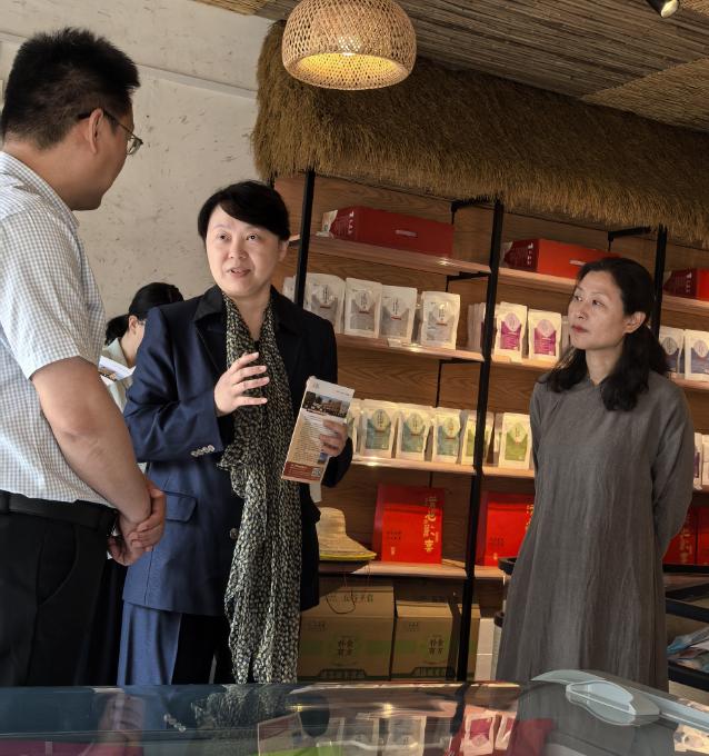 三益真食品有限公司总经理、三益祥食育书院经理刘时存,三益真食品有限公司副总经理周心信、杨安树带领武艳一行实地探访了智能化速冻主食生产线与三益祥食育书院,直观感受企业“产业+文化”双轮驱动的发展模式。