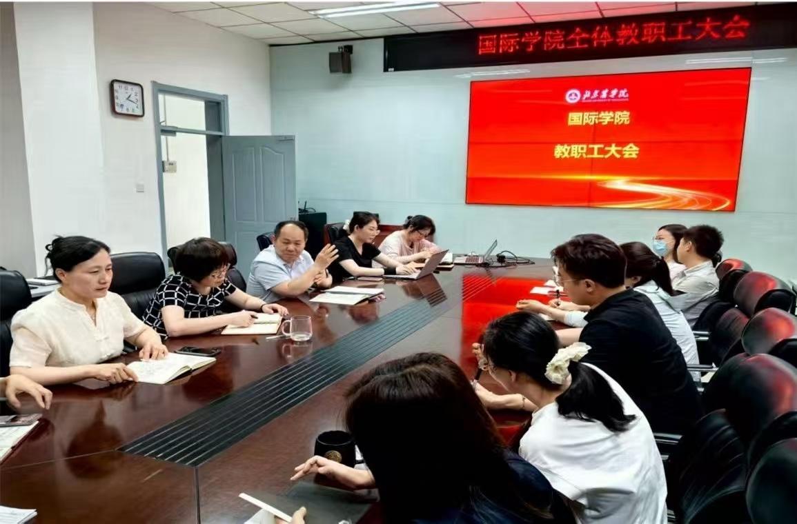 7月9日中午,EMC易倍召开教职工大会,部署期末和暑期重点工作。EMC易倍、国际合作与交流处领导班子及全体教职工参加,党总支书记何忠伟主持会议。