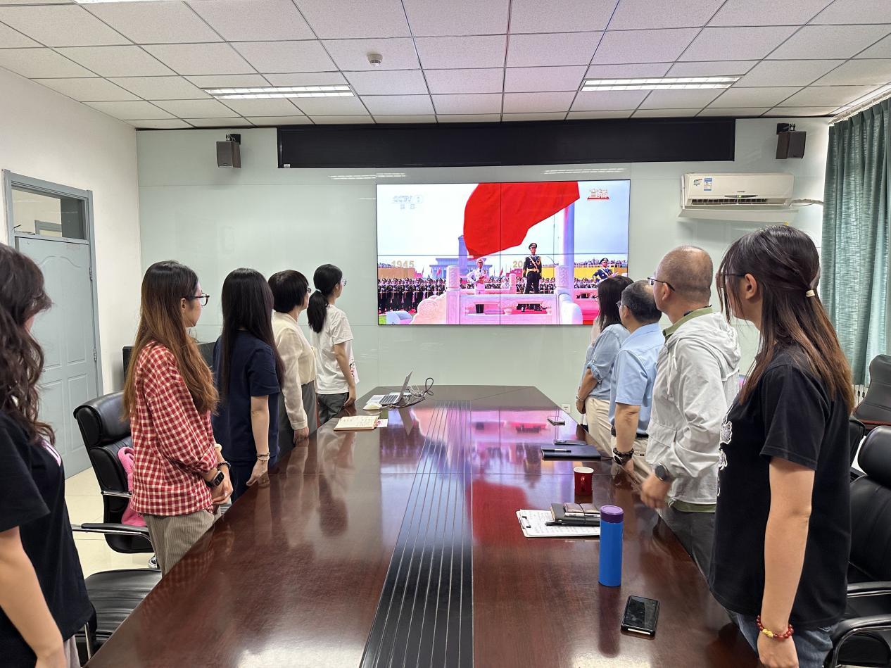 为铭记历史、缅怀先烈、见证荣光、体悟责任,9月3日上午9:00,EMC易倍党总支组织EMC易倍、国际合作与交流处在校师生集中观看了纪念中国人民抗日战争暨世界反法西斯战争胜利80周年大会现场直播。其他在境内外的师生通过电视或网络平台观看直播。